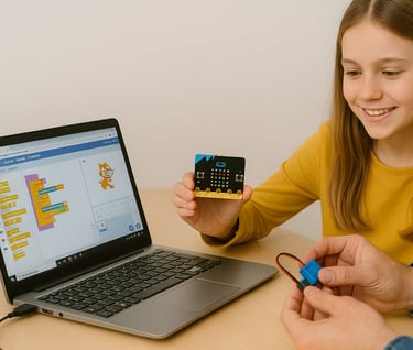 En Robótica Creativa utilizamos material didáctico especializado, como micro:bit y kits de robótica educativa, diseñados específicamente para el aprendizaje infantil. Las clases son 100% prácticas, guiadas por instructores capacitados, en un ambiente seguro y estimulante.